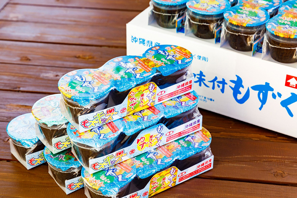 製造部門の主力は、25年のロングセラー商品であるカップモズクの「モズキッズ」です。沖縄県産のモズクを使用し、お子さまでも食べやすいようシークワーサーやゆず風味の優しい味付けがヒットの理由です。お子さまはもちろん大人の方にも愛され、県内トップシェアを誇る自慢の製品です。私たちのこだわりは、製造から配送までを「自社一貫体制」で行うこと。沖縄の豊かな海の幸を、自社製造・自社配送で新鮮なままお届けすることをモットーにしています。