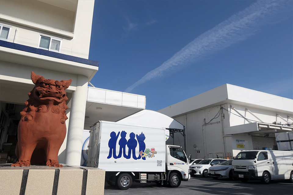 株式会社マルキン海産は、沖縄県浦添市に拠点を置き、食品製造と卸売の二本柱で事業を展開しています。卸売部門では、県内の主要量販店様へ鮮魚や海藻を届けるほか、離島を含む沖縄県内すべての小中学校に加え、老人福祉施設や保育園に給食食材全般を届けています。